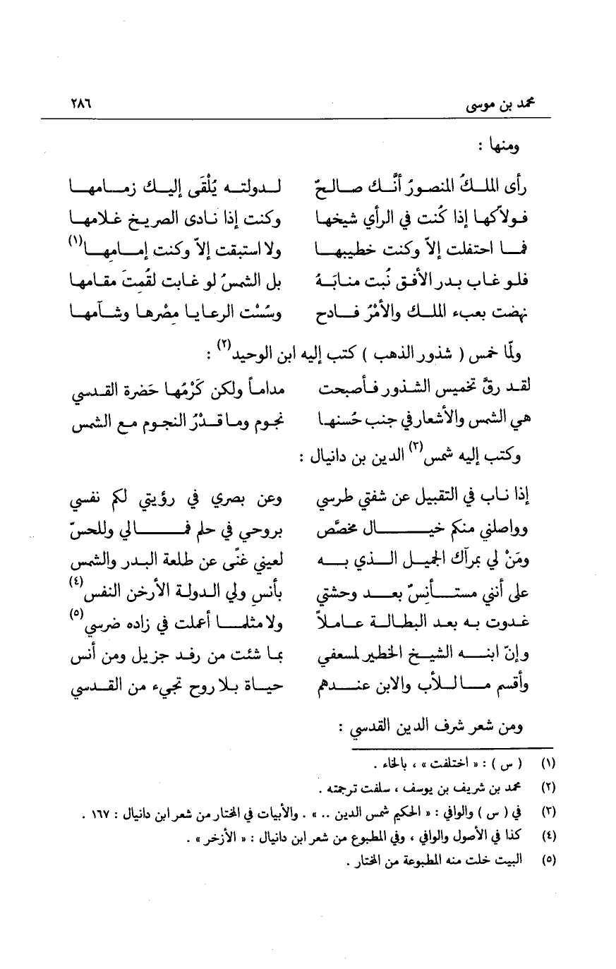 ومن شعر شرف الدين القدسي: