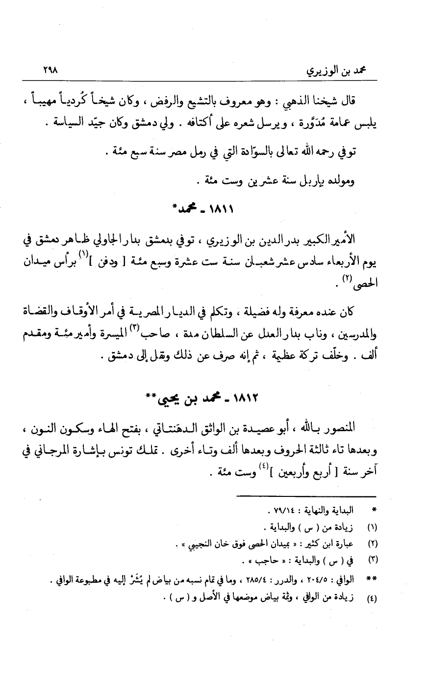 قال شيخنا الذهبي: وهو معروف بالتشيع والرفض، وكان شيخاً كردياً مهيباً، يلبس عمامة مدوّرة، ويرسل شعره على أكتافه. ولي دمشق وكان جيّد السياسة.