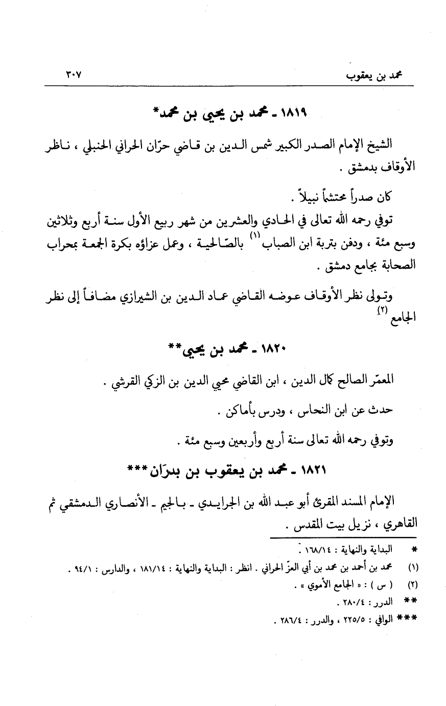 الشيخ الإمام الصدر الكبير شمس الدين بن قاضي حرّان الحراني الحنبلي، ناظر الأوقاف بدمشق.