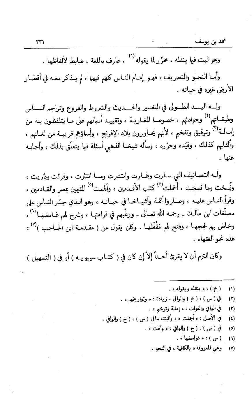 وأما النحو والتصريف، فهو إمام الناس كلهم فيهما، لم يذكر معه في أقطار الأرض غيره في حياته.
