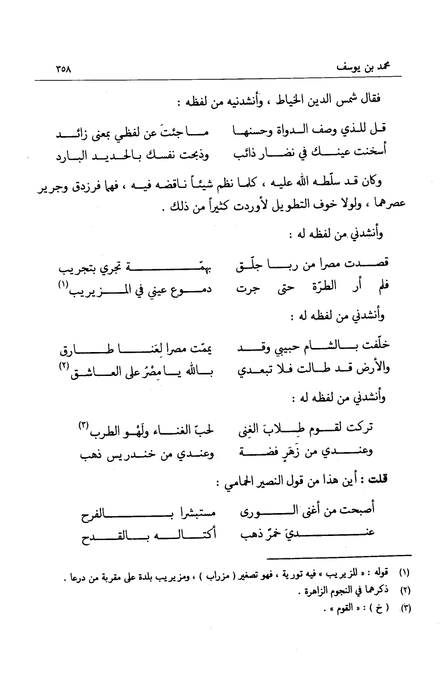 قلت: أين هذا من قول النصير الحمامي: