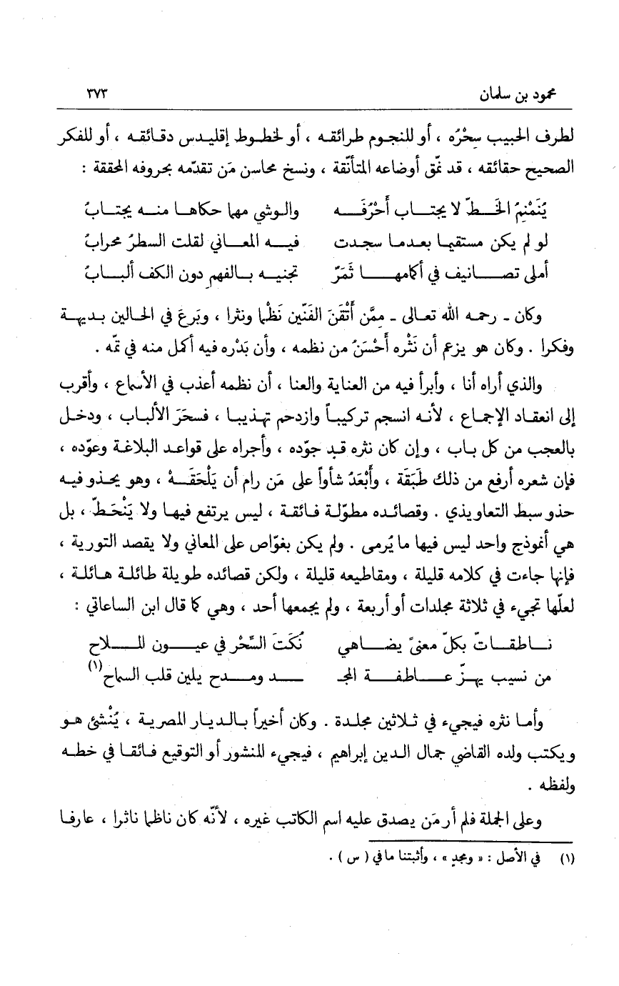 لطرف الحبيب سِحره، أو للنجوم طرائقه، أو لخطوط إقليدس دقائقه، أو للفكر الصحيح حقائقه، قد نمّق أوضاعه المتأنّقة، ونسخ محاسن من تقدّمه بحروفه المحقّقة: