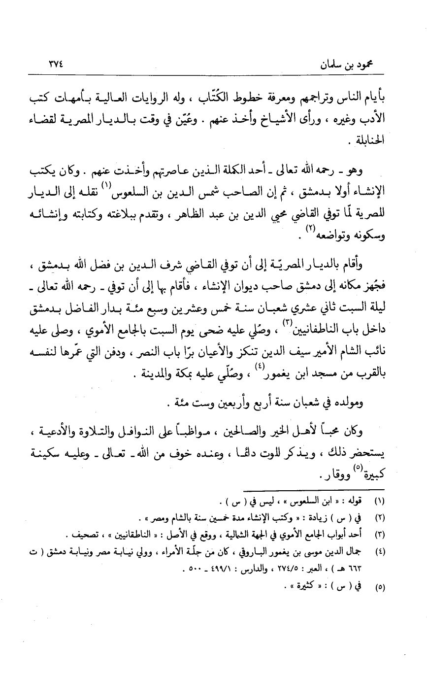 وهو - رحمه الله تعالى - أحد الكلمة الذين عاصرتهم وأخذت عنهم. وكان يكتب الإنشاء أولاً بدمشق، ثم إن الصاحب شمس الدين بن السلعوس نقله الى الديار المصرية لما توفي القاضي محيي الدين بن عبد الظاهر، وتقدم ببلاغته وكتابته وإنشائه وسكونه وتواضعه.