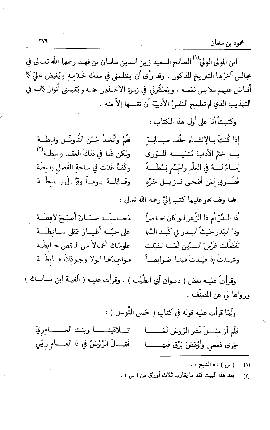ولما قرأت عليه قوله في كتاب حُسن التّوسل: