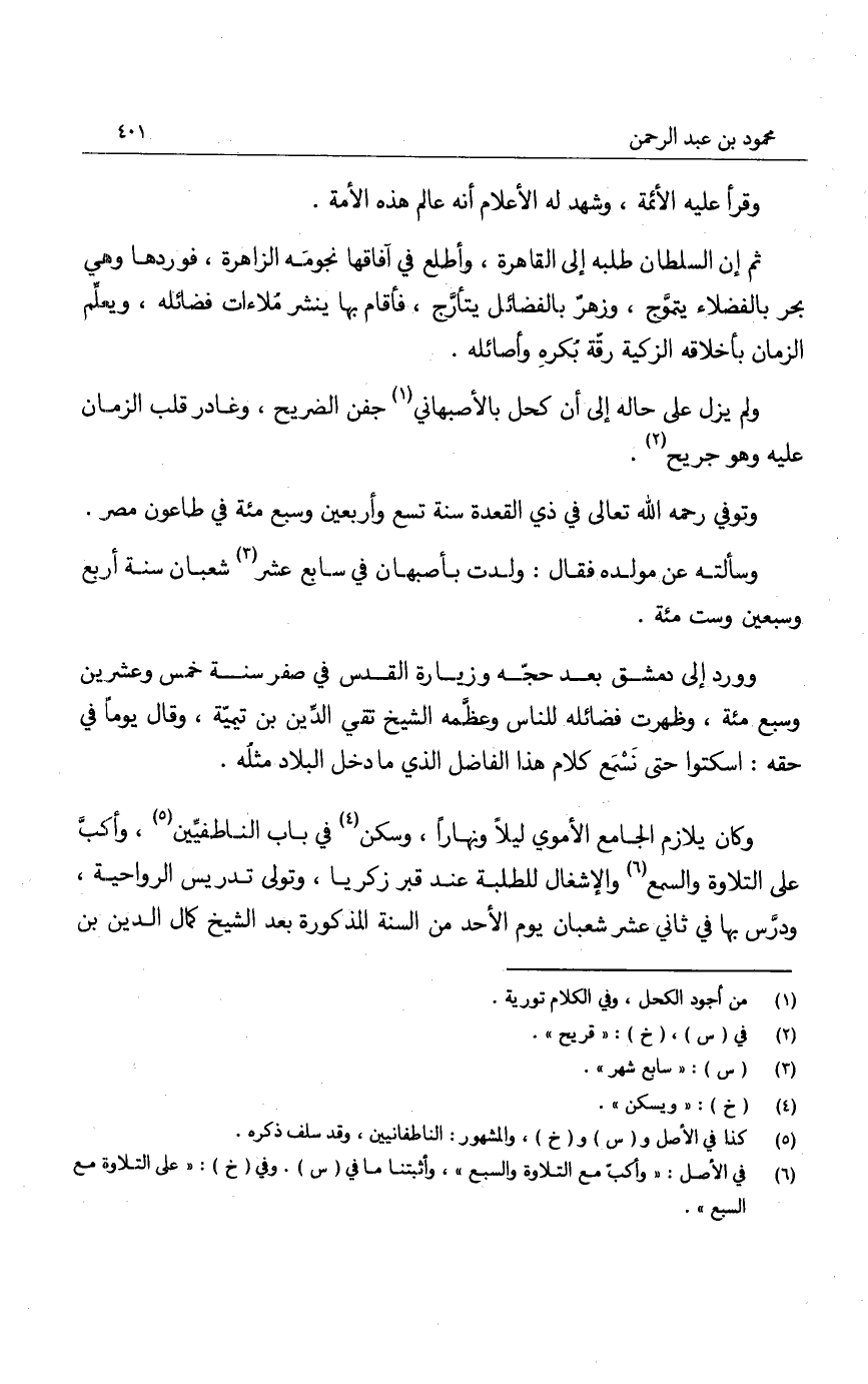 وسألته عن مولده فقال: ولدت بأصبهان في سابع عشر شعبان سنة أربع وسبعين وست مئة.