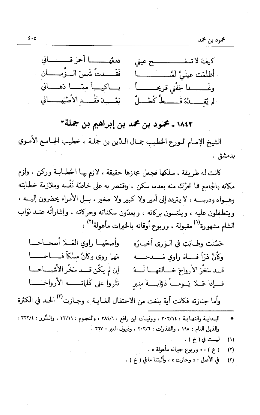 الشيخ الإمام الورع الخطيب جمال الدين بن جملة، خطيب الجامع الأموي بدمشق.