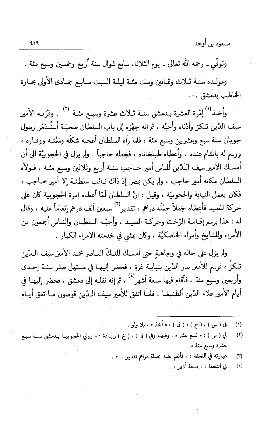 وأخذ إمرَة العشرة بدمشق سنة ثلاث عشرة وسبع مئة. وقرّبه الأمير سيف الدين تنكز وأدناه وأحبّه، ثم إنه جهّزه الى باب السلطان صحبة أسندَمُر رسول جوبان سنة سبع وعشرين وسبع مئة، فلما رآه السلطان أعجبه شكله وسمته ووقاره، ورسم له بالمقام عنده، وأعطاه طبلخاناه، فجعله حاجباً. ولم يزل في الحجوبية الى أن أمسك الأمير سيف الدين أُلماس أمير حاجب سنة أربع وثلاثين وسبع مئة، فولاه السلطان مكانه أمير حاجب، ولم يكن بمصر إذ ذاك نائب سلطنة إلا أمير حاجب، فكان يعمل النيابة والحجوبية، وقيل: إن السلطان لما أعطاه إمرة الحجوبية كان على حركة للصيد فأعطاه جملاً حمله دراهم، تقدير سبعين ألف درهم إنعاماً عليه، وقال له: هذا برسم إقامة الرّخت وحركة الصيد، وأحبّه السلطان والناس أجمعون من الأمراء والمشايخ وأمراء الخاصكية، وكان يمشي في خدمته الأمراء الكبار.