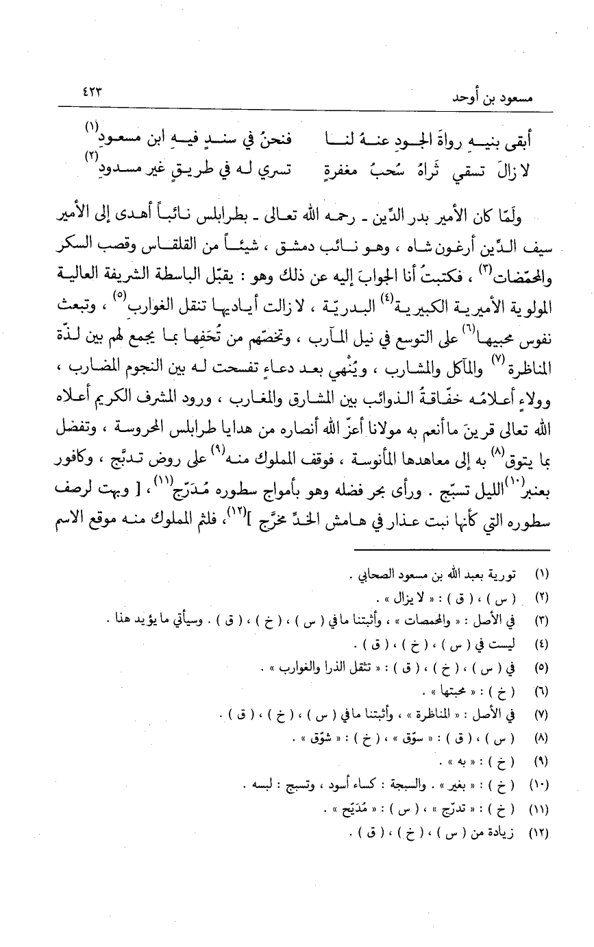 أبقى بنيهِ رواةَ الجود عنه لنا ... فنحن في سندٍ فيه ابن مسعود