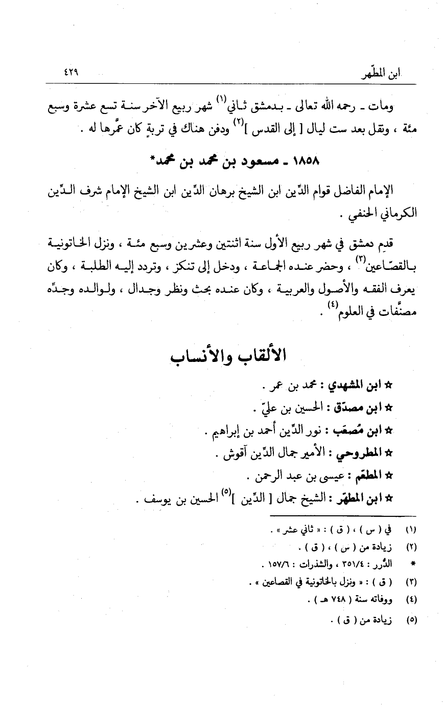 الإمام الفاضل قوام الدين ابن الشيخ برهان الدين ابن الشيخ الإمام شرف الدين الكرماني الحنفي.
