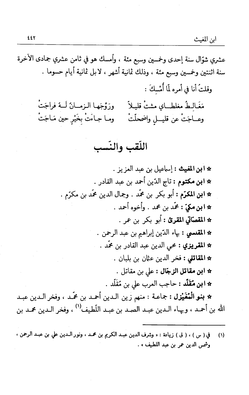جماعة: منهم زين الدين أحمد بن محمد، وفخر الدين عبد الله بن أحمد، وبهاء الدين عبد الصمد بن عبد اللطيف، وفخر الدين محمد بن