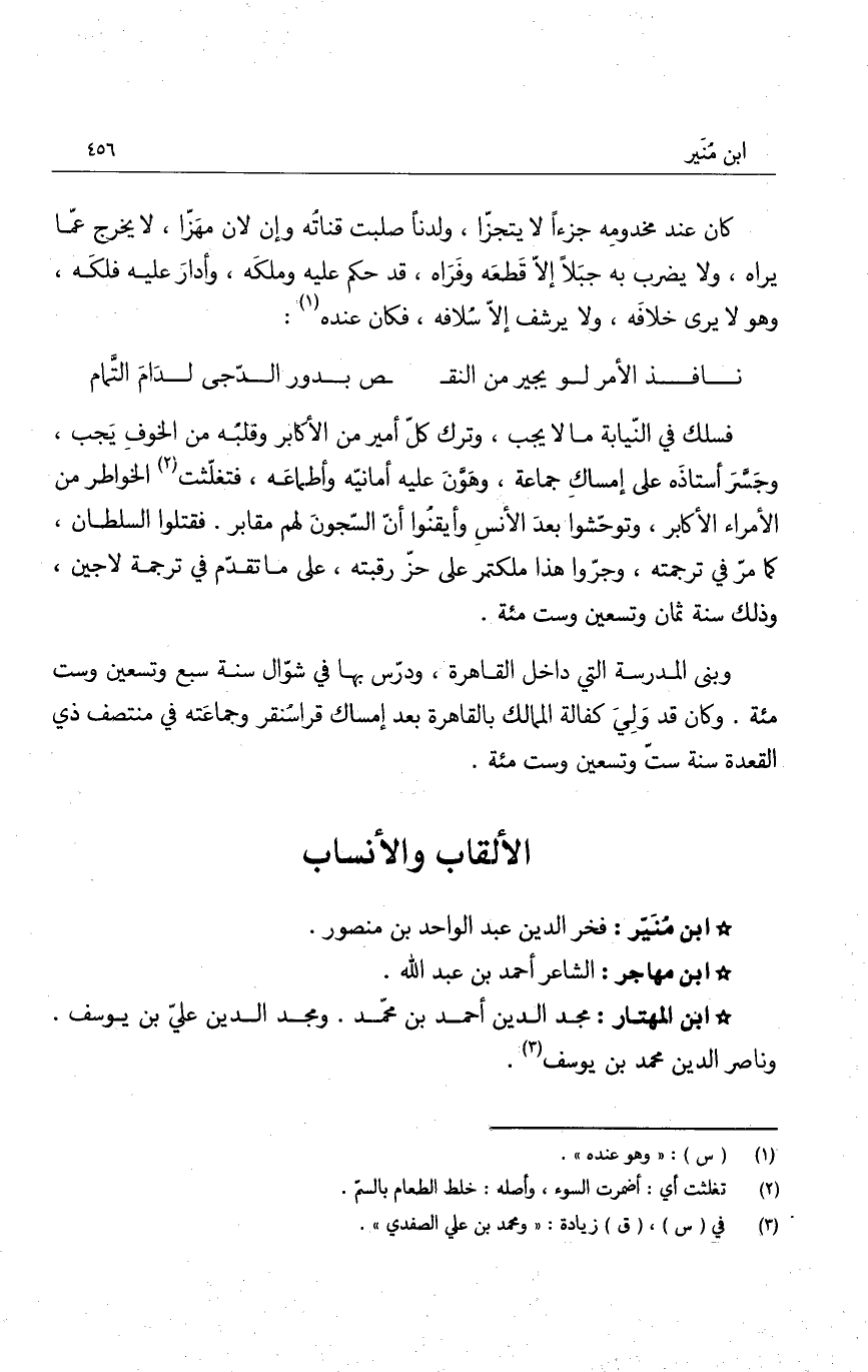 مجد الدين أحمد بن محمد. ومجد الدين عليّ بن يوسف. وناصر الدين محمد بن يوسف.