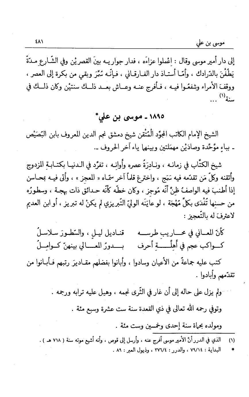 الشيخ الإمام الكاتب المجوّد المتقن شيخ دمشق نجم الدين المعروف بابن البُصَيص - بياء موحّدة وصادَين مهملتين وبينهما ياء آخر الحروف.