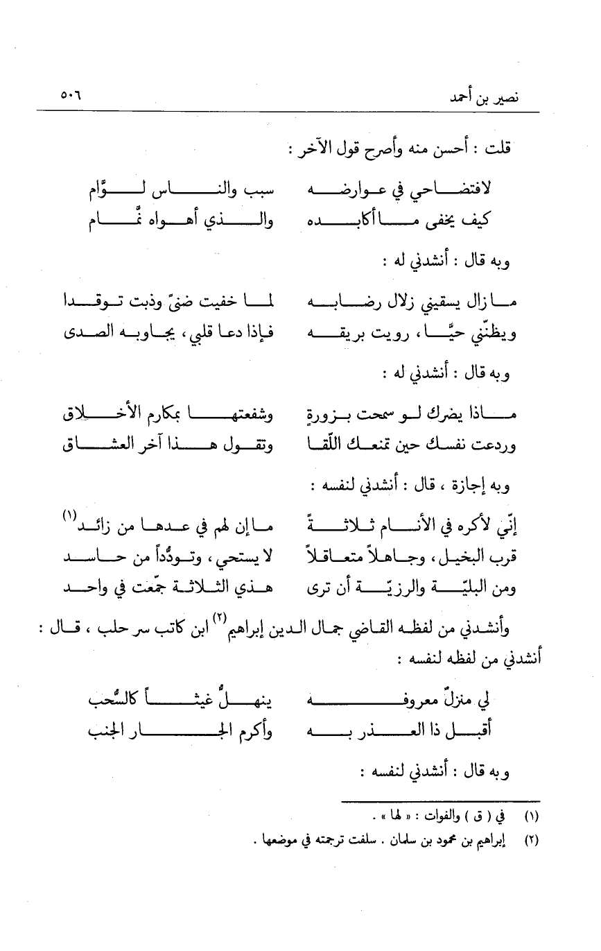 وأنشدني من لفظه القاضي جمال الدين إبراهيم ابن كاتب سر حلب، قال: أنشدني من لفظه لنفسه: