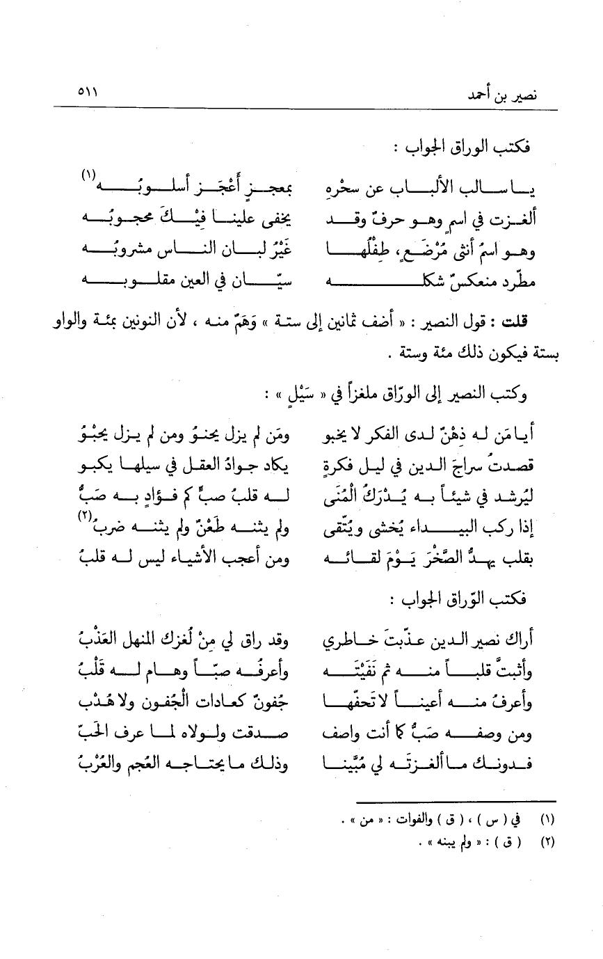 فكتب الوراق الجواب: