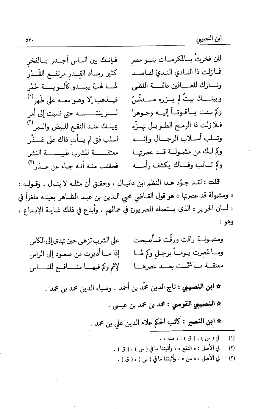 قلت: لقد جوّد هذا النظم ابن دانيال، وحقق أن مثله لا ينال. وقوله: ومشمولة قد عصرتها هو قول القاضي محيي الدين بن عبد الظاهر بعينه ملغزاً في لسان الحرير الذي يستعمله المصريون في عمائمهم، وأبدع في ذلك غاية الإبداع، وهو: