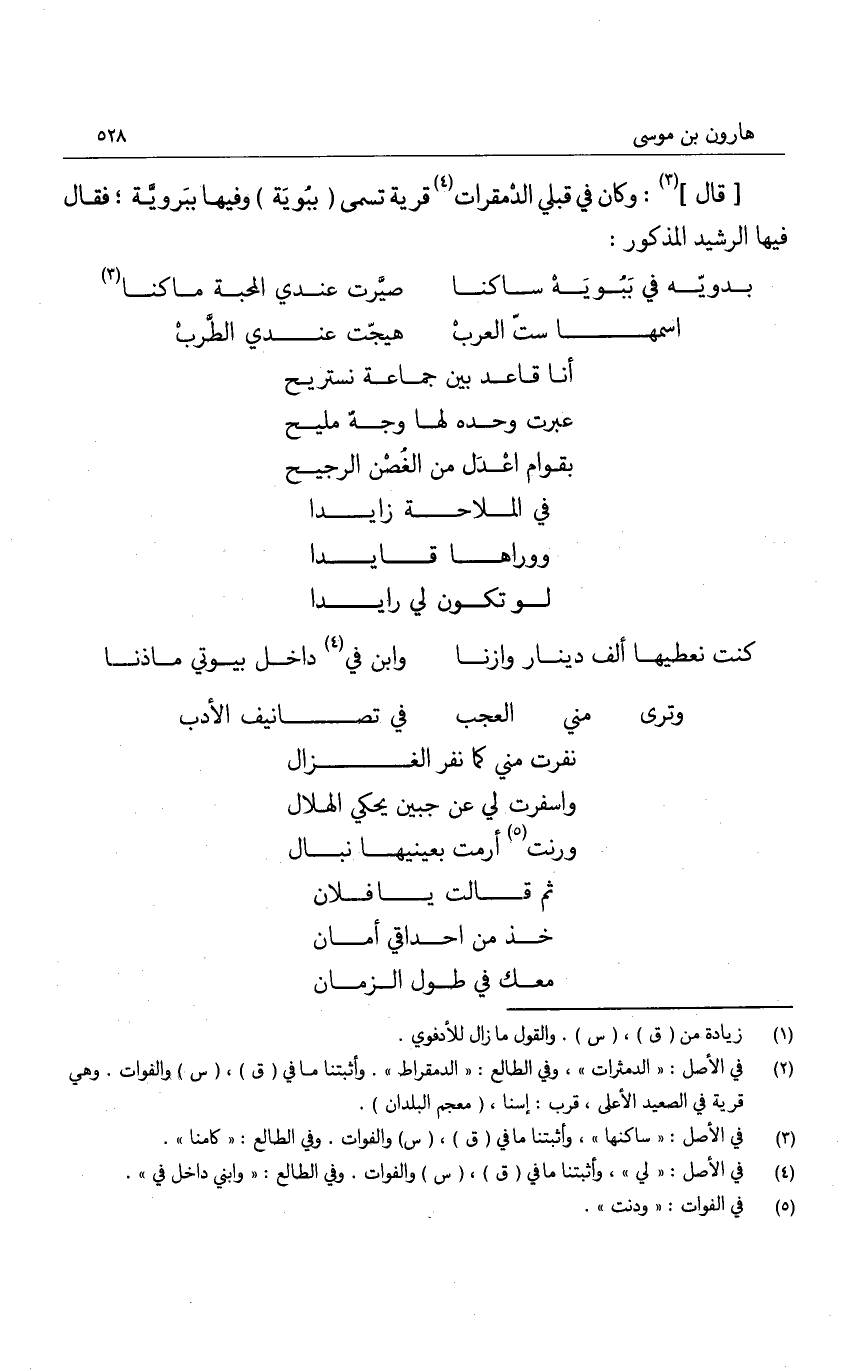 قال: وكان في قبلي الدمقرات قرية تسمى ببوية وفيها ببرويّة، فقال فيها الرشيد المذكور: