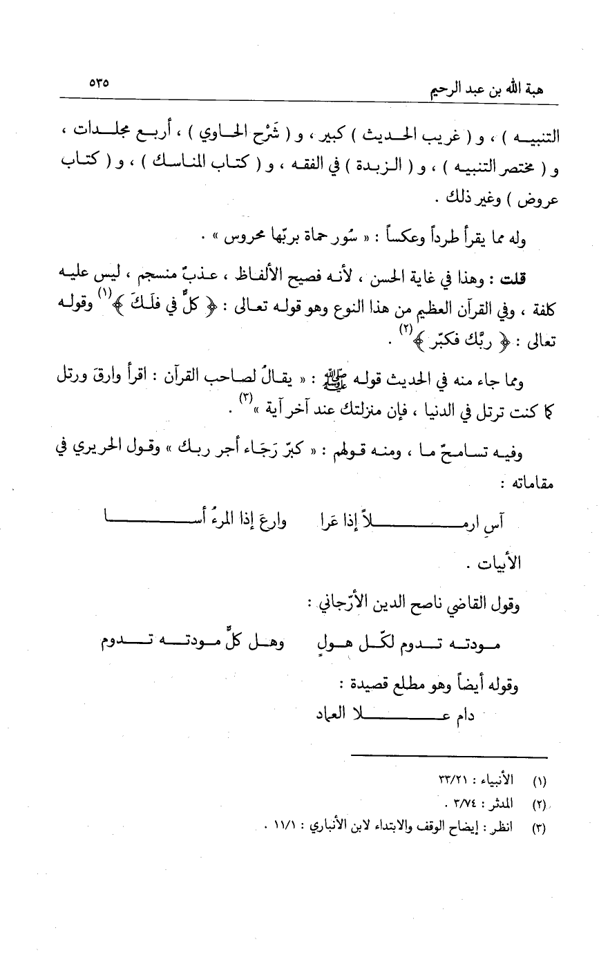 قلت: وهذا في غاية الحسن، لأنه فصيح الألفاظ، عذب منسجم، ليس عليه كلفة، وفي القرآن العظيم من هذا النوع وهو قوله تعالى: " كلٌ في فلك " وقوله تعالى: " ربّك فكبّر ".