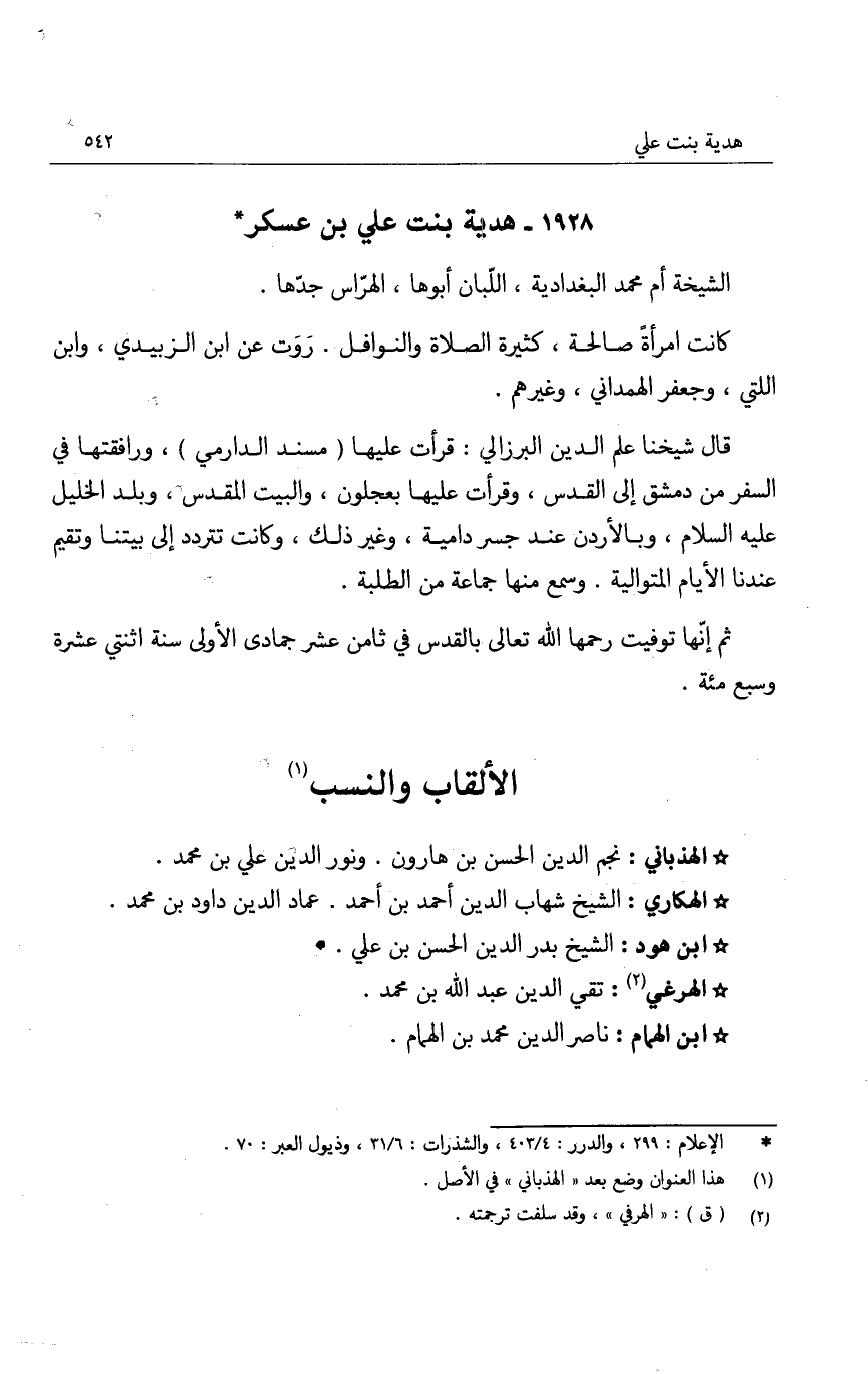 الشيخة أم محمد البغدادية، اللّبان أبوها، الهرّاس جدها.