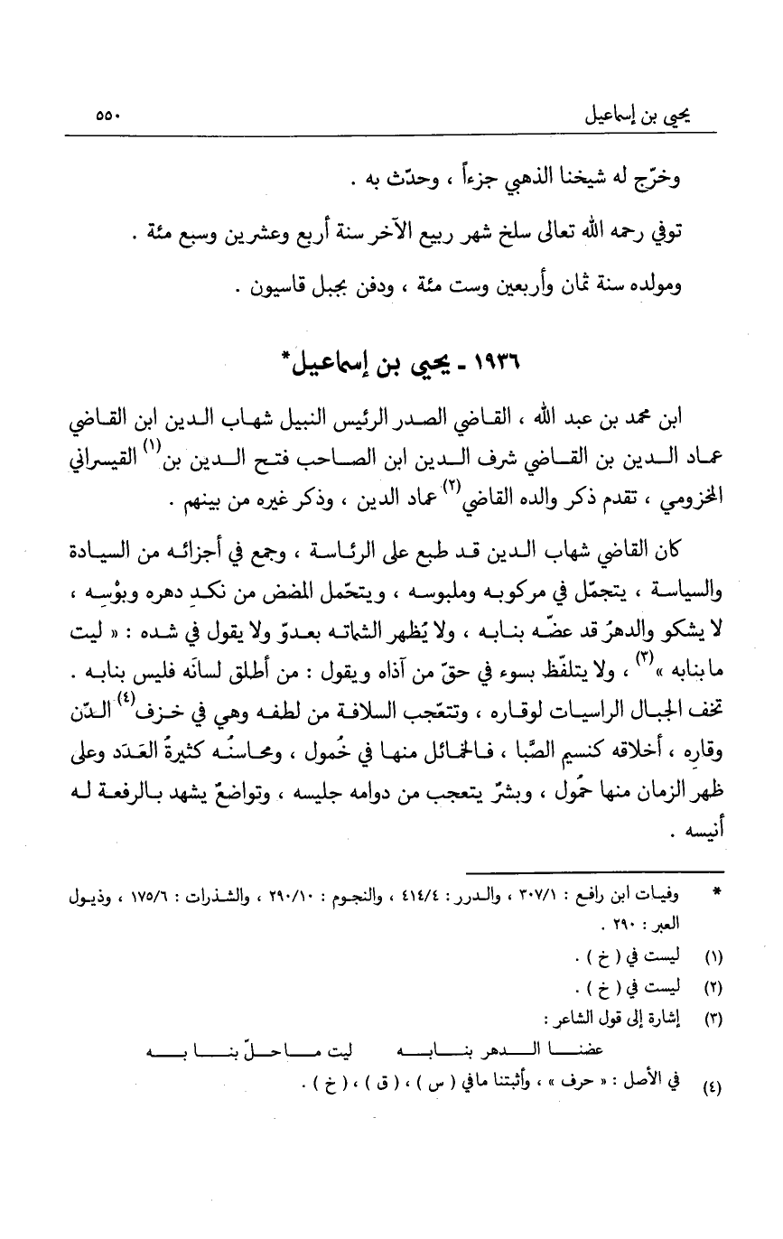 ابن محمد بن عبد الله، القاضي الصدر الرئيس النبيل شهاب الدين ابن القاضي عماد الدين بن القاضي شرف الدين ابن الصاحب فتح الدين بن القيسراني المخزومي، تقدم ذكر والده القاضي عماد الدين، وذكر غيره من بينهم.