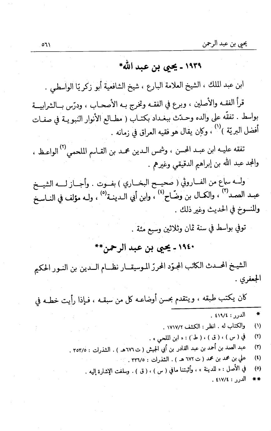 ابن عبد الملك، الشيخ العلامة البارع، شيخ الشافعية أبو زكريا الواسطي.