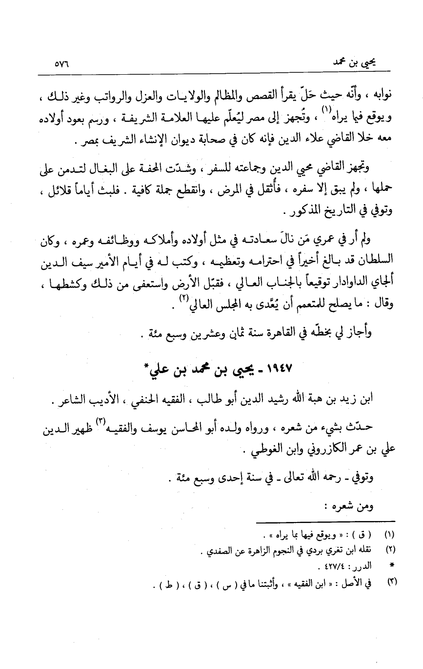 نوابه، وأنه حيث حلّ يقرأ القصص والمظالم والولايات والعزل والرواتب وغير ذلك، ويوقع فيما يراه، وتُجهز الى مصر ليُعلّم عليها العلامة الشريفة، ورسم بعود أولاده معه خلا القاضي علاء الدين فإنه كان في صحابة ديوان الإنشاء الشريف بمصر.