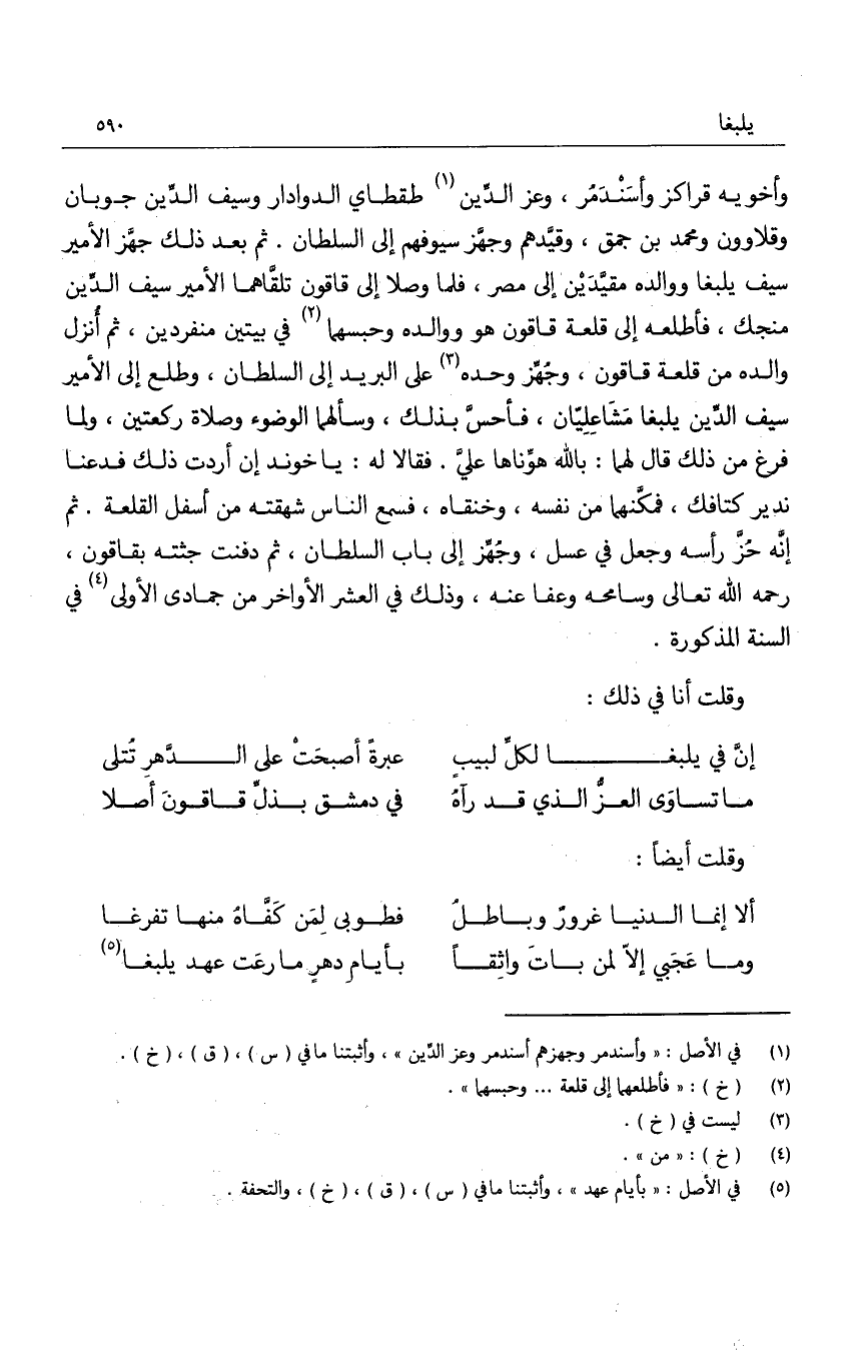 إن في يلبغا لكلِّ لبيبٍ ... عبرةً أصبحت على الدّهر تُتلى