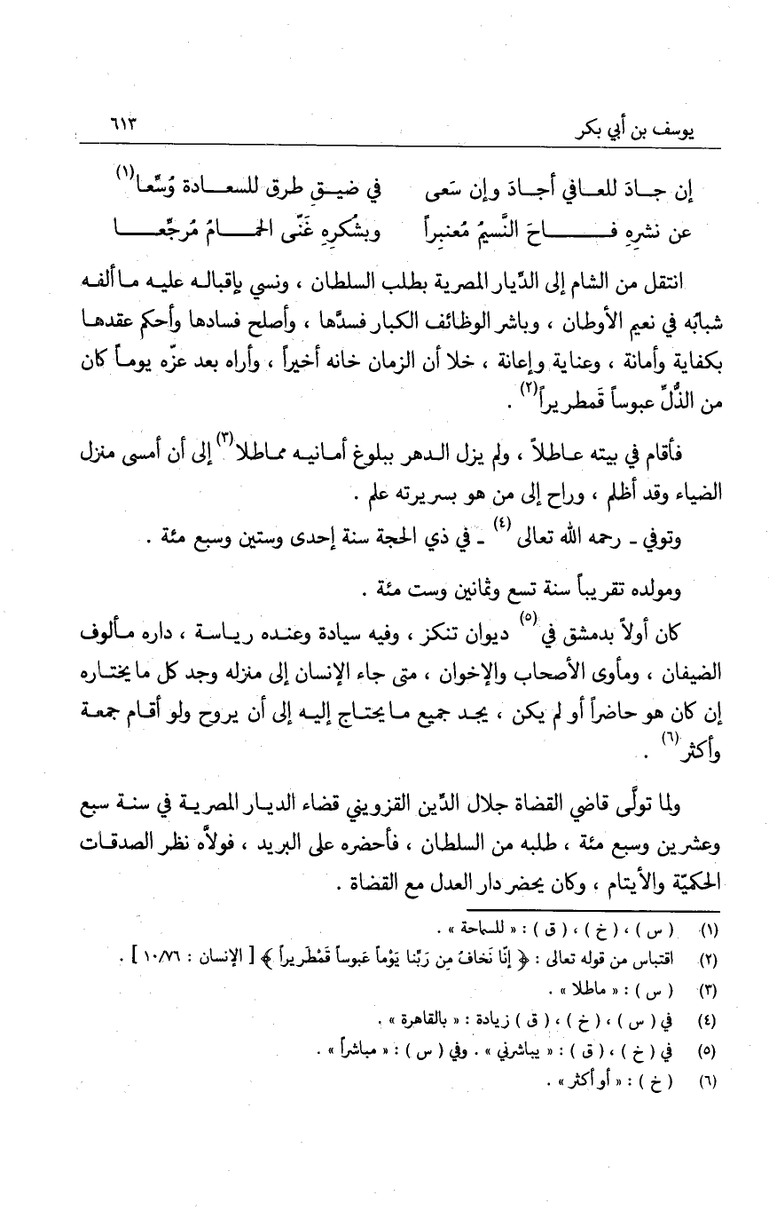 انتقل من الشام الى الديار المصرية بطلب السلطان، ونسي بإقباله عليه ما ألفه شبابه في نعيم الأوطان، وباشر الوظائف الكبار فسدّها، وأصلح فسادها وأحكم عقدها بكفاية وأمانة، وعناية وإعانة، خلا أن الزمان خانه أخيراً، وأراه بعد عزّه يوماً كان من الذلّ عبوساً قمطريراً.