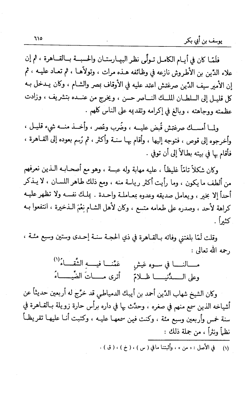 وقلت لما بلغتني وفاته بالقاهرة في ذي الحجة سنة إحدى وستين وسبع مئة، رحمه الله تعالى: