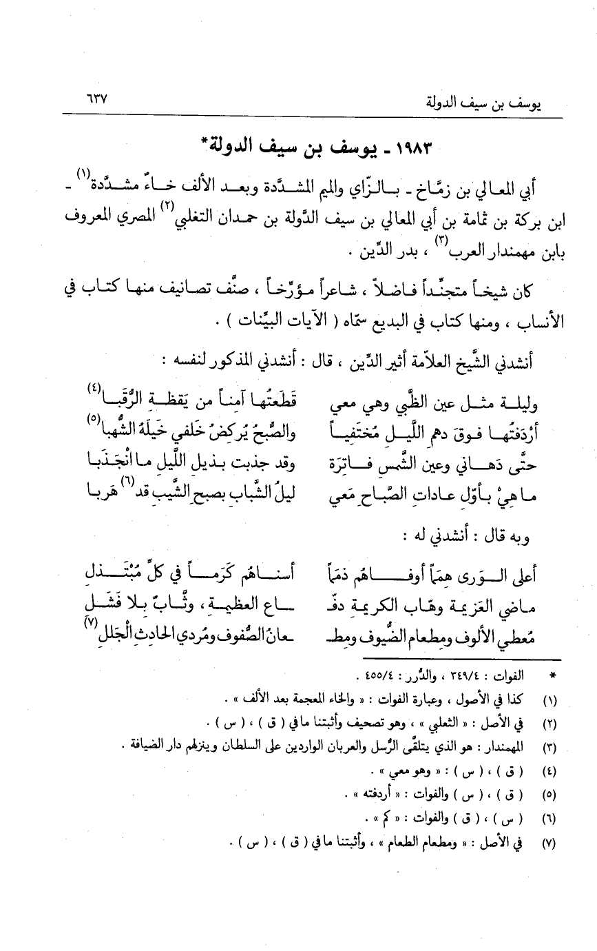 أبي المعالي بن زمّاخ - بالزاي والميم المشددة وبعد الألف خاء مشددة - ابن بركة بن ثمامة بن أبي المعالي بن سيف الدولة بن حمدان التغلبي المصري المعروف بابن مهمندار العرب، بدر الدين.