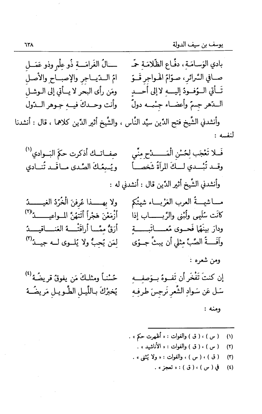 وأنشدني الشيخ فتح الدين سيد الناس، والشيخ أثير الدين كلاهما، قال: أنشدنا لنفسه: