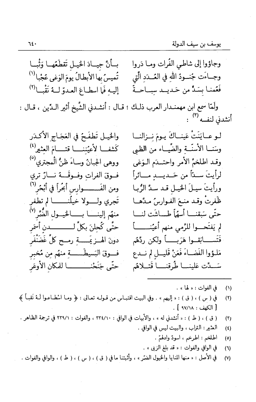 ولما سمع ابن مهمندار العرب ذلك، قال: أنشدني الشيخ أثير الدين، قال: أنشدني لنفسه: