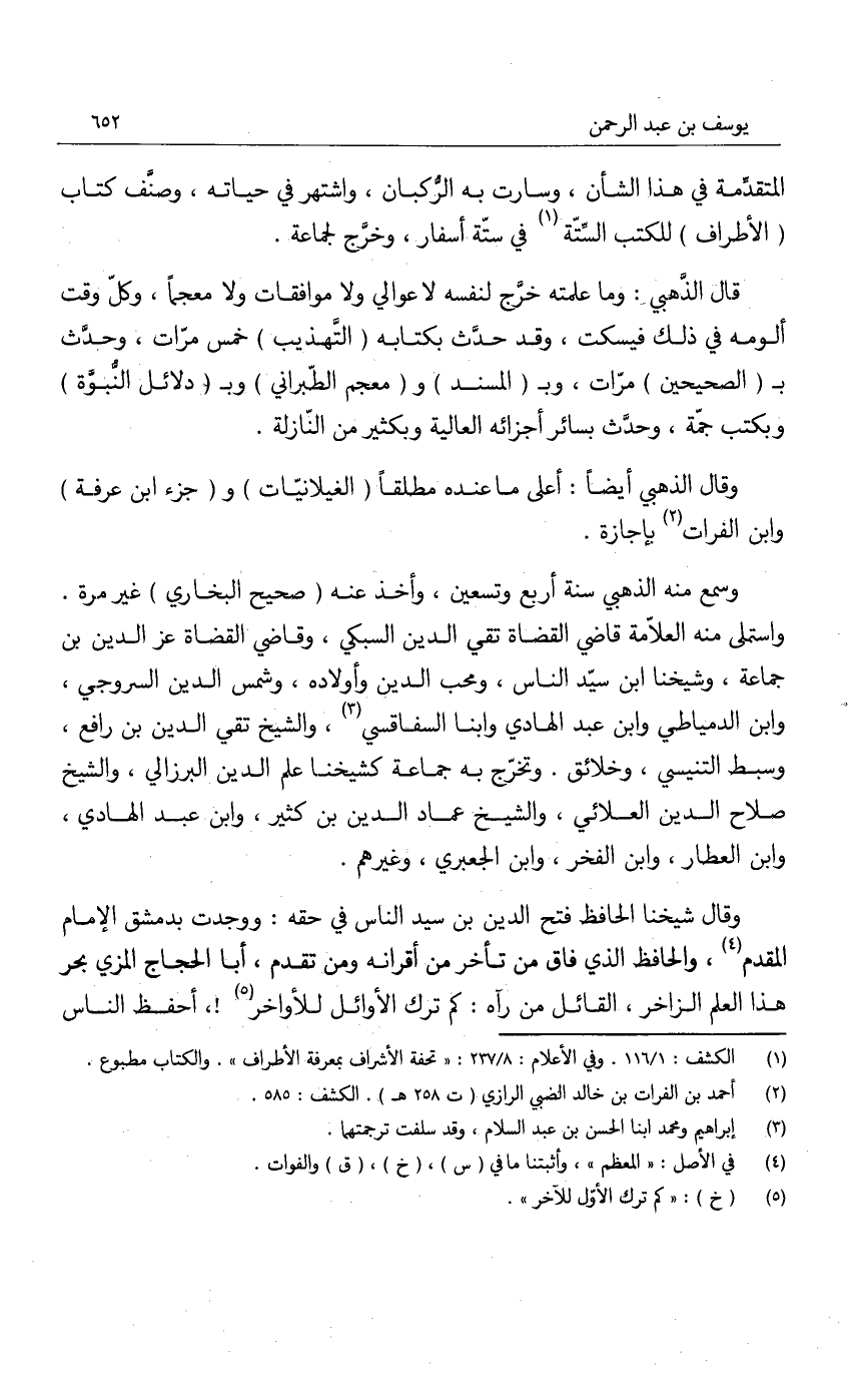 المتقدمة في هذا الشأن، وسارت به الرُكبان، واشتهر في حياته، وصنّف كتاب الأطراف للكتب الستة في ستة أسفار، وخرّج لجماعة.