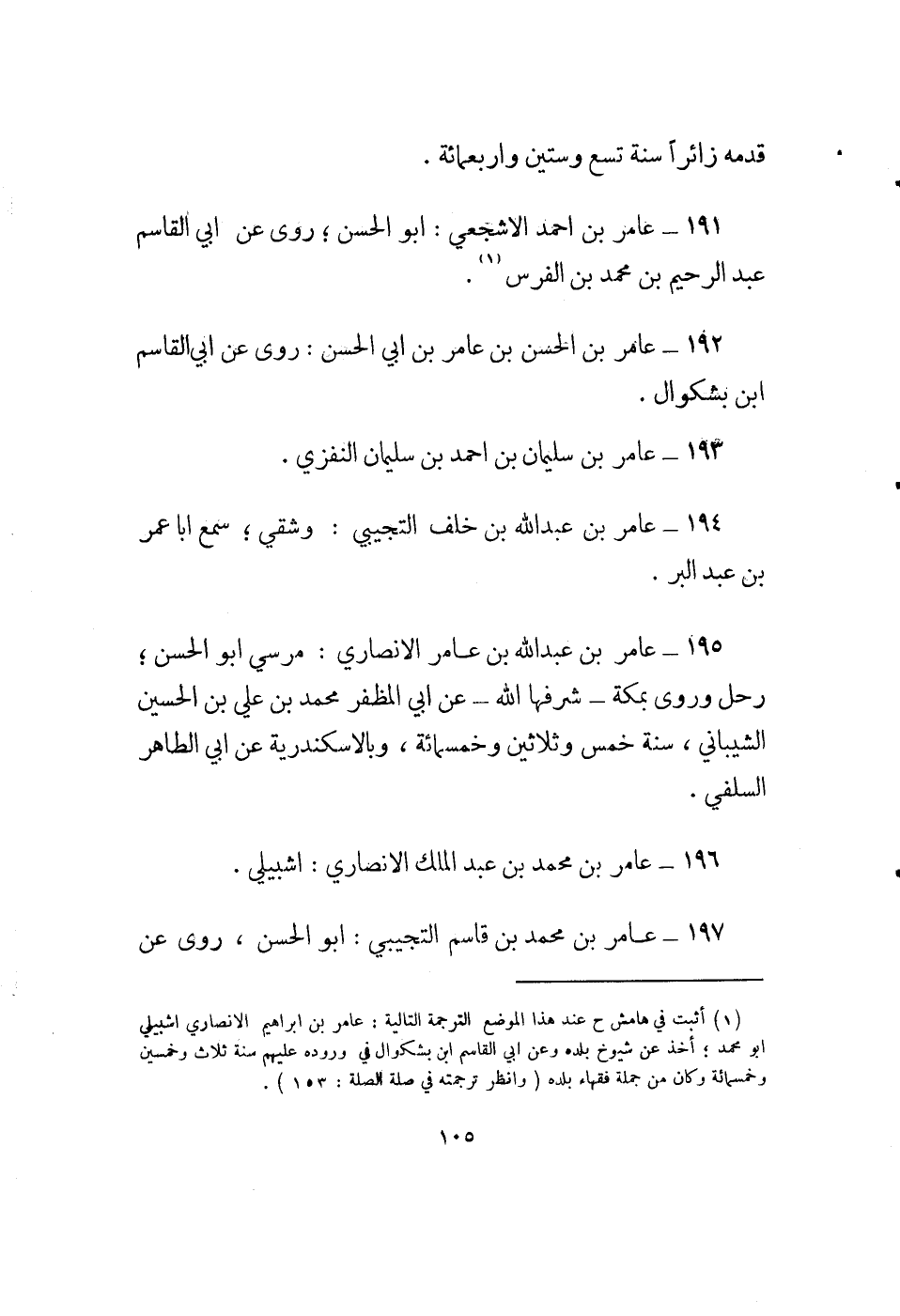 192 - عامر بن الحسن بن عامر بن أبي الحسن: روى عن أبي القاسم ابن بشكوال.