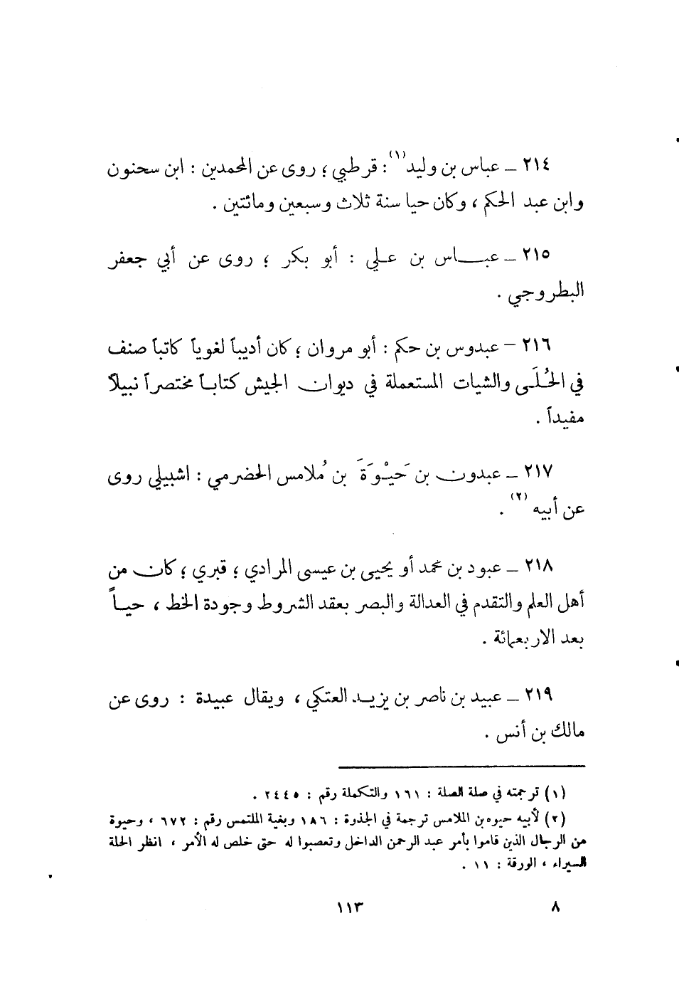 216 - عبدوس بن حكم: أبو مروان؛ كان أديباً لغوياً كاتباً صنف في الحلى والشيات المستعملة في ديوان الجيش كتاباً مختصراً نبيلاً مفيداً.