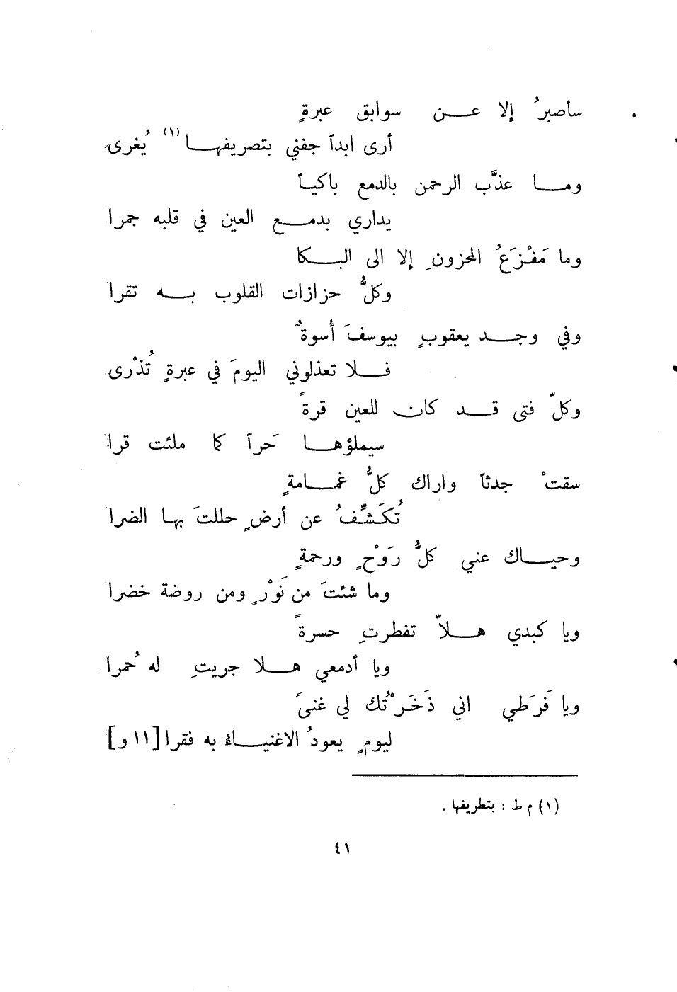 وفي وجد يعقوب بيوسف أسوة ... فلا تعذلوني اليوم في عبرة تذرى