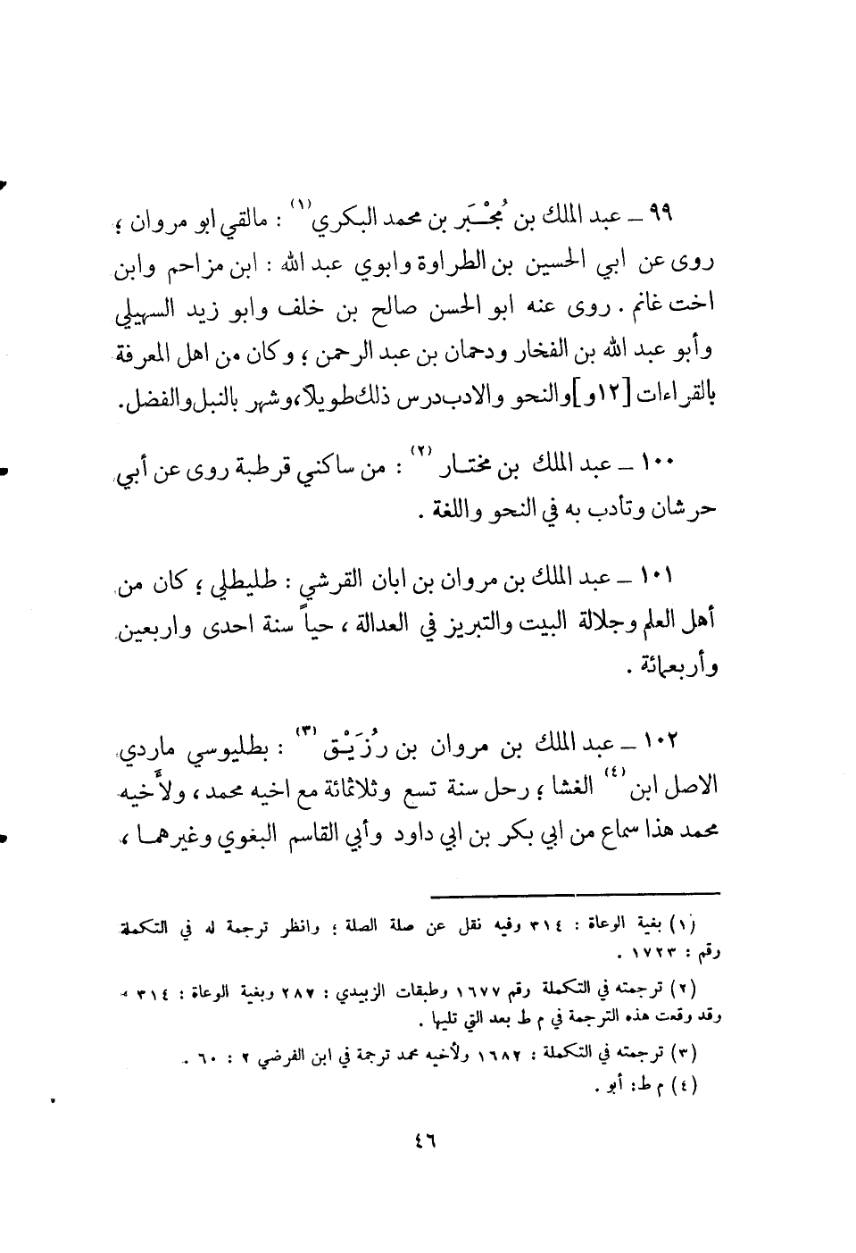 100 - عبد الملك بن مختار (2) : من ساكني قرطبة روى عن أبي حرشان وتأدب به في النحو واللغة.