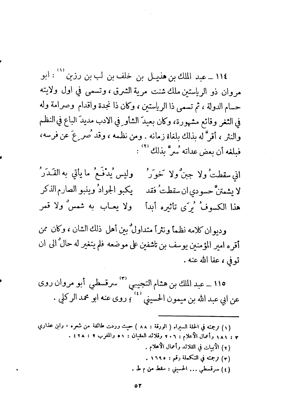 115 - عبد الملك بن هشام التجيبي (3) سرقسطي أبو مروان روى عن أبي عبد الله بن ميمون الحسيني (4) ؛ روى عنه أبو محمد الركلي.