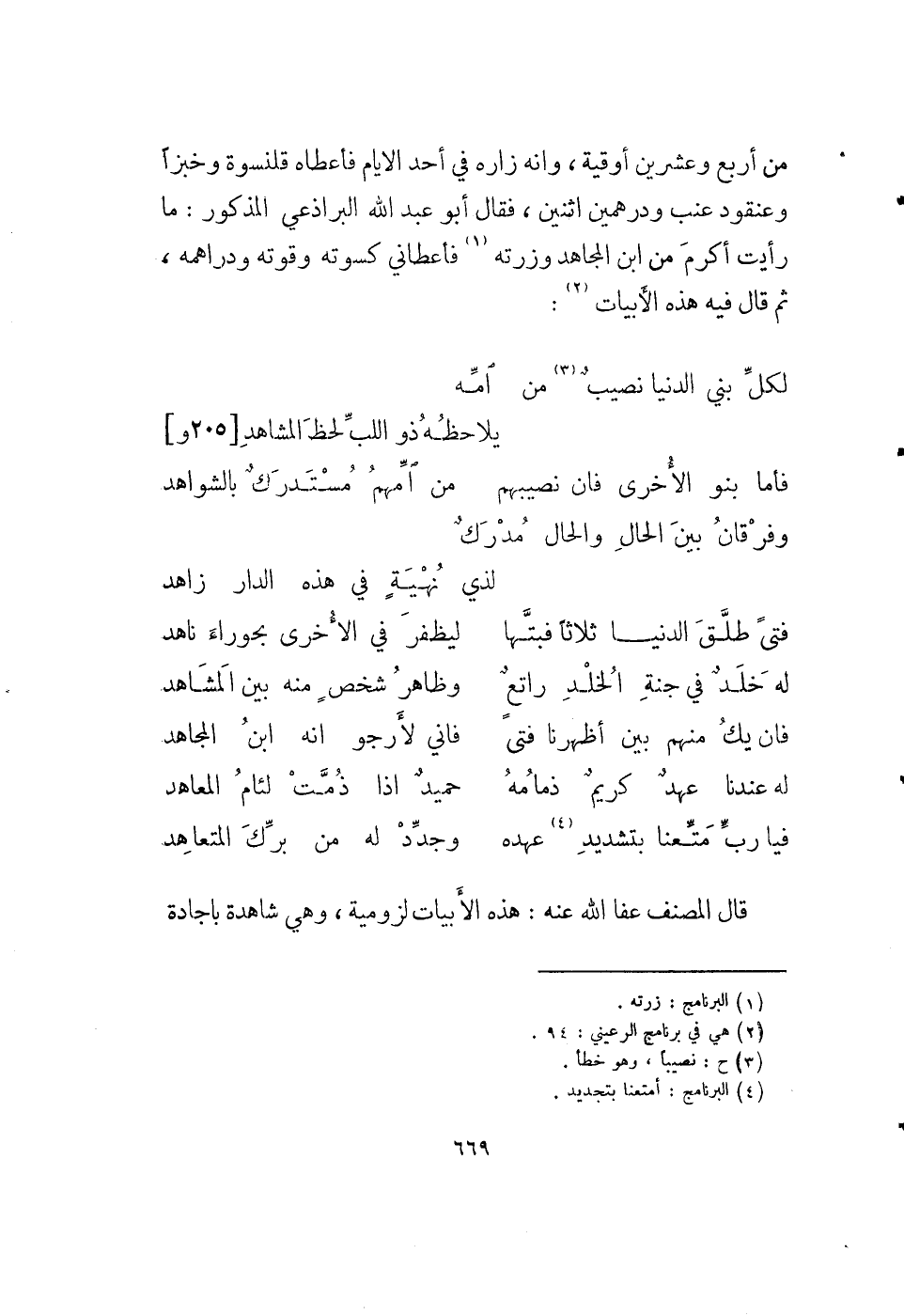 لكل بني الدنيا نصيب (3) من أمه ... يلاحظه ذو اللب لحظ المشاهد [205 و]