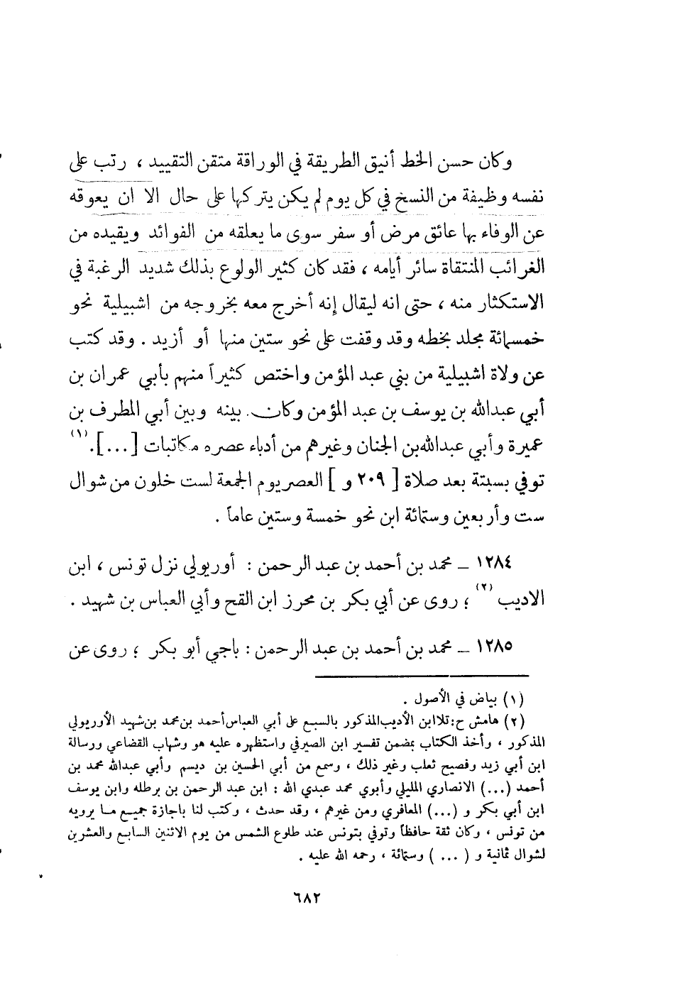 1284 - محمد بن أحمد بن عبد الرحمن: أوريولي نزل تونس، ابن الأديب (2) ؛ روى عن أبي بكر بن محرز ابن القح وأبي العباس بن شهيد.