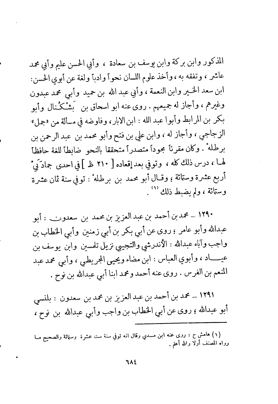 1291 - محمد بن أحمد بن عبد العزيز بن محمد بن سعدون: بلنسي أبو عبد الله؛ روى عن أبي الخطاب بن واجب وأبي عبد الله بن نوح،