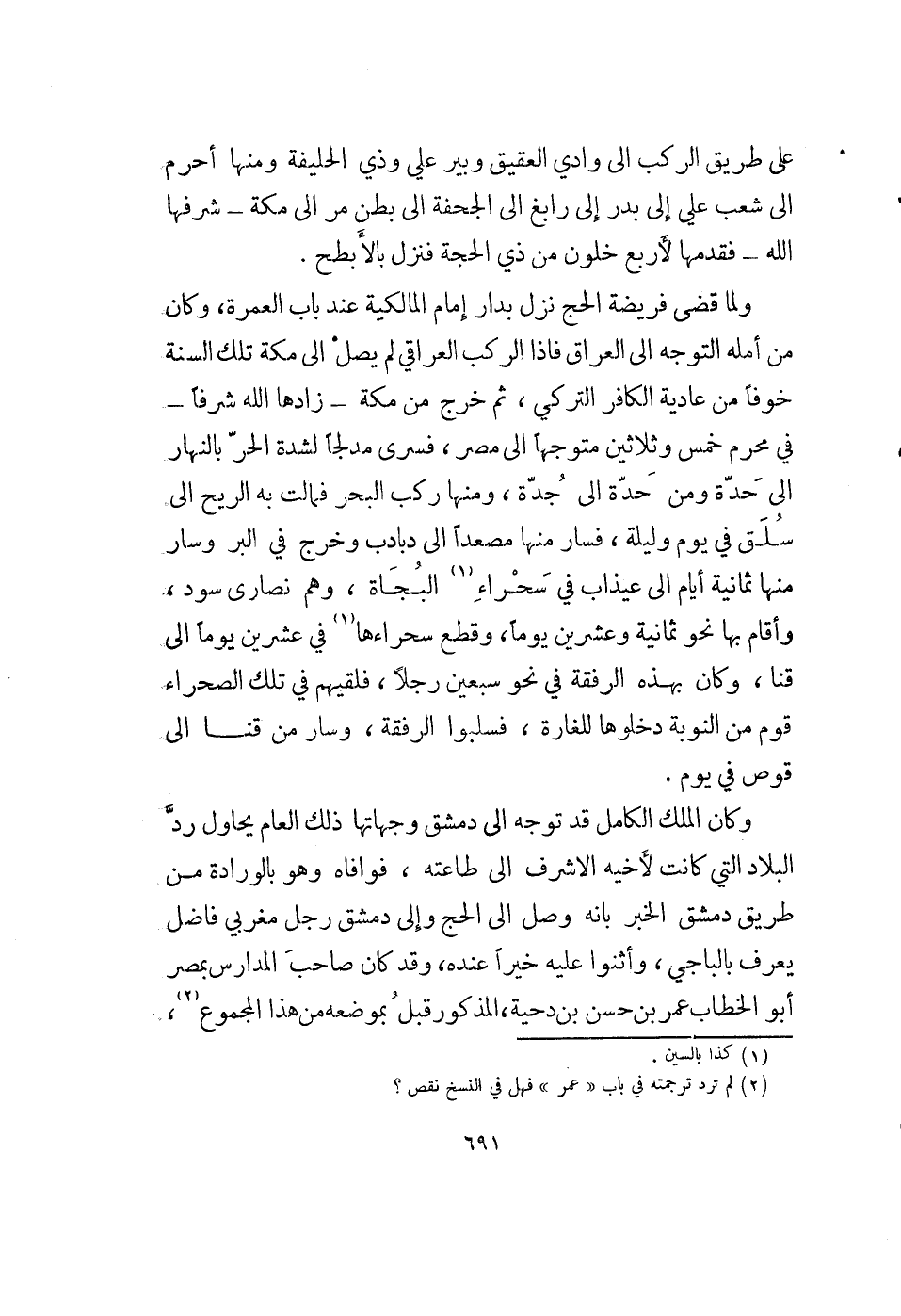 وكان الملك الكامل قد توجه إلى دمشق وجهاتها ذلك العام يحاول رد البلاد التي كانت لأخيه الأشرف إلى طاعته، فوافاه وهو بالورادة من طريق دمشق الخبر بأنه وصل إلى الحج وإلى دمشق رجل مغربي فاضل يعرف بالباجي، وأثنوا عليه خيراً عنده، وقد كان صاحب المدارس بمصر أبو الخطاب عمر بن حسن بن دحية، المذكور قبل بموضعه من هذا المجموع (3) ،