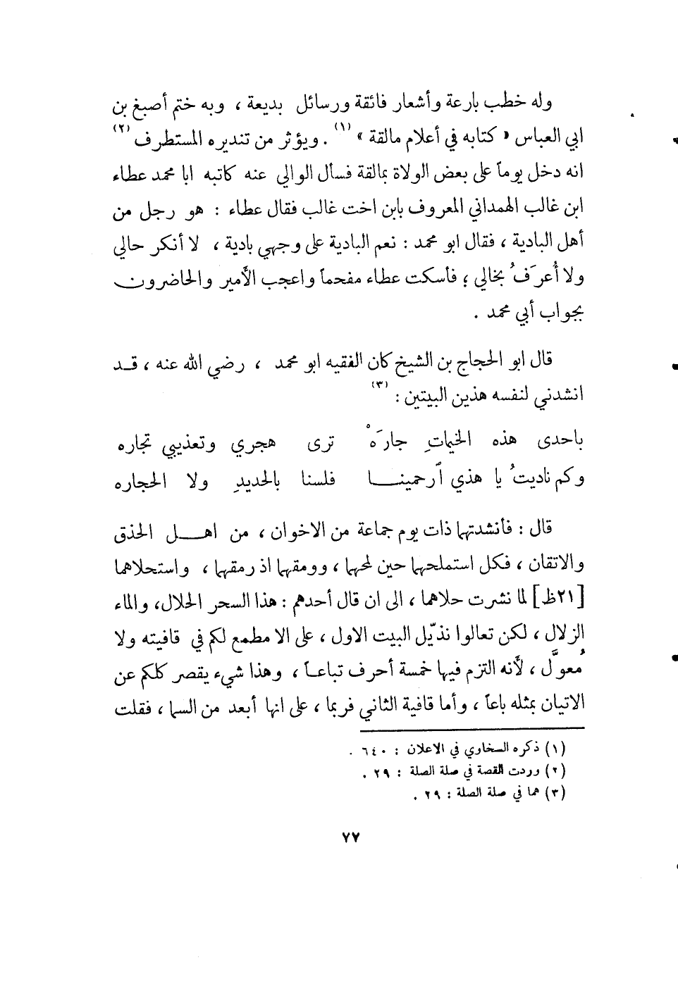 وكم ناديت يا هذي ارحمينا ... فلسنا بالحديد ولا الحجاره قال: فأنشدتهما ذات يوم جماعة من الاخوان، من اهل الحذق والاتقان، فكل استملحهما حين لمحهما، وومقهما إذ رمقهما، واستحلاهما [21 ظ] لما نشرت حلاهما، إلى أن قال أحدهم: هذا السحر الحلال، والماء الزلال، لكن تعالوا نذيل البيت الأول، على ألا مطمع لكم في قافيته ولا معول، لأنه التزم فيها خمسة أحرف تباعاً، وهذا شيء يقصر كلكم عن الإتيان بمثله باعاً، وأما قافية الثاني فربما، على إنها أبعد من السما، فقلت