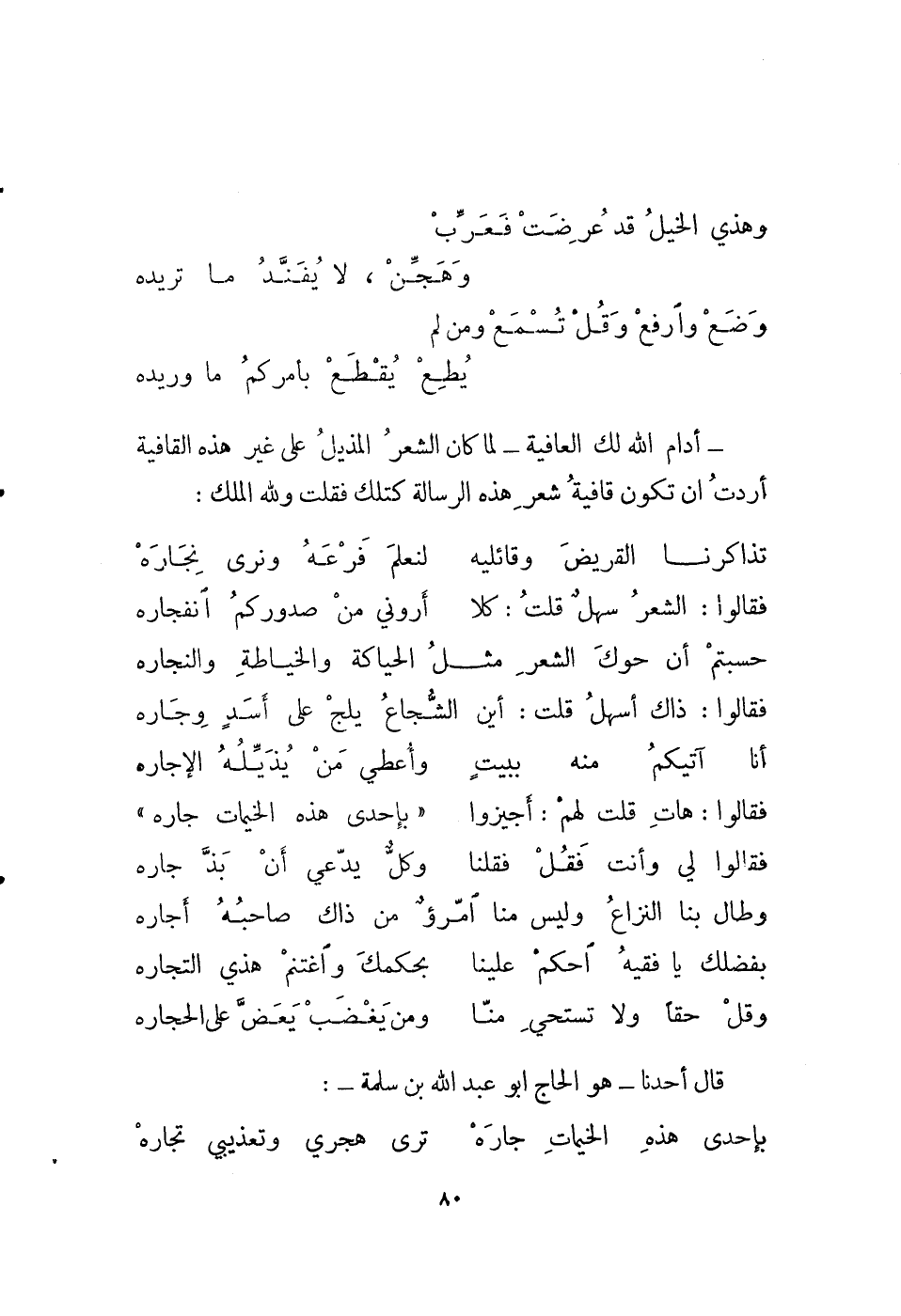 وقل حقاً ولا تستحي منا ... ومن يغضب يعض على الحجاره قال أحدنا - هو الحاج أبو عبد الله بن مسلمة -: