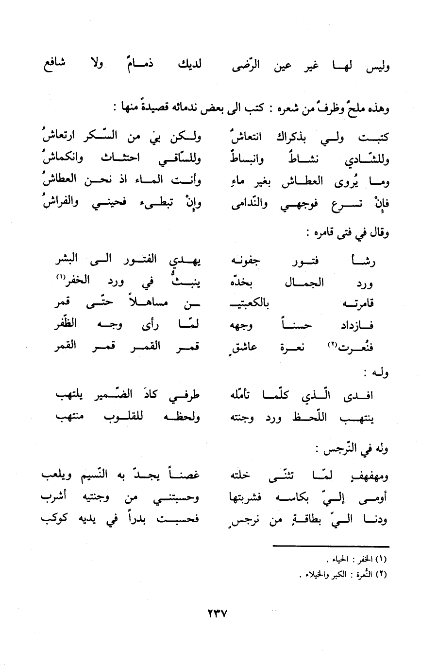 (ودنا إِلَيّ بطاقة من نرجس ... فحسبت بَدْرًا فِي يَدَيْهِ كَوْكَب)