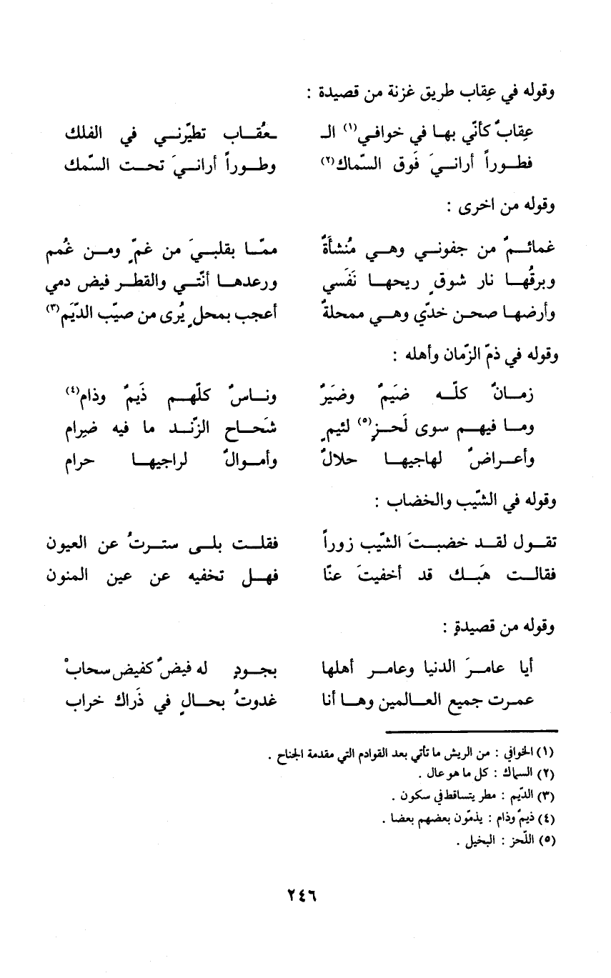 (عِقَاب كَأَنِّي بهَا فِي خوافي الْعقَاب ... تطيرني فِي الْفلك)