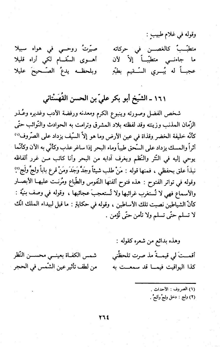 (مَا جَاءَنِي متطببا إِلَّا لِأَن ... أَهْوى السقام لكَي أرَاهُ قَلِيلا)
