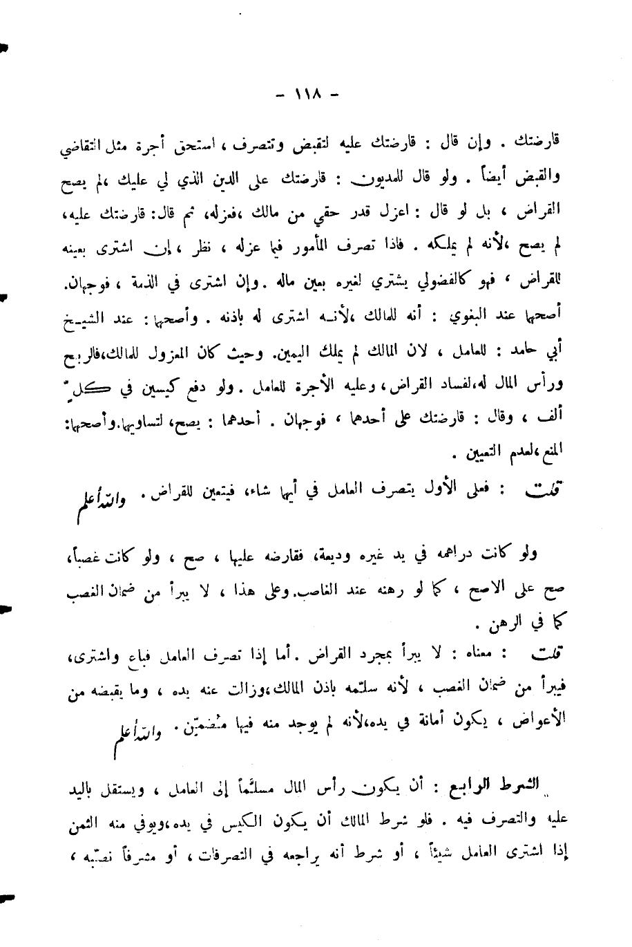 قُلْتُ: فَعَلَى الْأَوَّلِ يَتَصَرَّفُ الْعَامِلُ فِي أَيِّهِمَا شَاءَ، فَيَتَعَيَّنُ لِلْقِرَاضِ. وَاللَّهُ أَعْلَمُ.