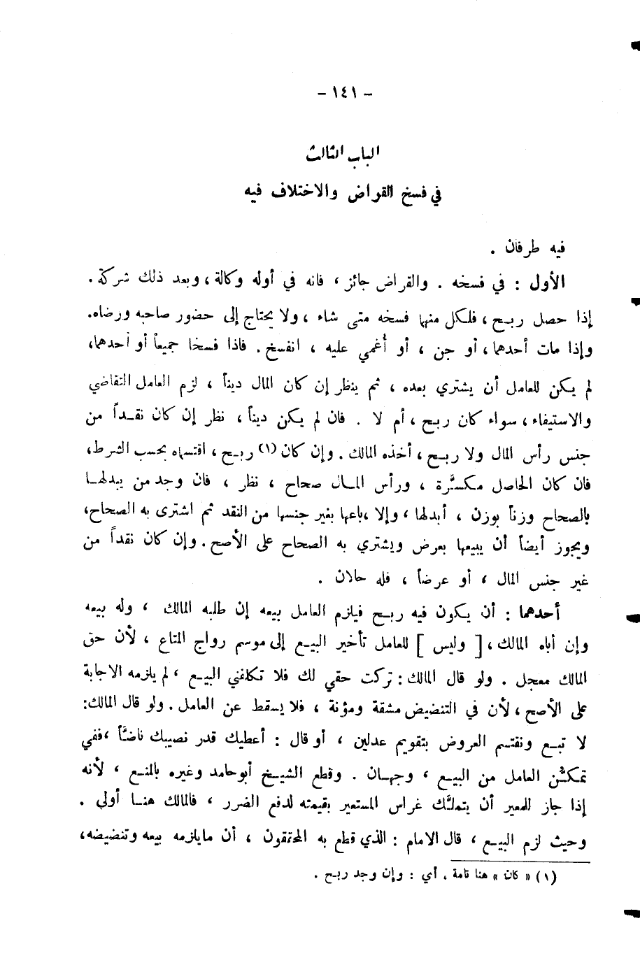 الْبَابُ الثَّالِثُ فِي فَسْخِ الْقِرَاضِ وَالِاخْتِلَافِ فِيهِ