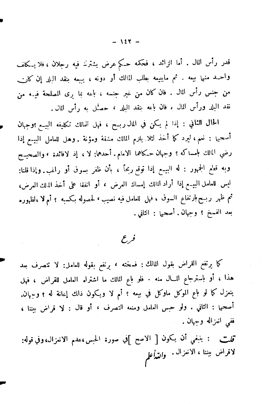 الْحَالُ الثَّانِي: إِذَا لَمْ يَكُنْ فِي الْمَالِ رِبْحٌ، فَهَلْ لِلْمَالِكِ تَكْلِيفُهُ الْبَيْعَ؟ وَجْهَانِ أَصَحُّهُمَا: نَعَمْ، لِيَرُدَّ كَمَا أَخَذَ لِئَلَّا يَلْزَمَ الْمَالِكَ مَشَقَّةٌ وَمُؤْنَةٌ. وَهَلْ لِلْعَامِلِ الْبَيْعُ إِذَا رَضِيَ الْمَالِكُ بِإِمْسَاكِهِ؟ وَجْهَانِ حَكَاهُمَا الْإِمَامُ. أَحَدُهُمَا: لَا، إِذْ لَا فَائِدَةَ، وَالصَّحِيحُ وَبِهِ قَطَعَ الْجُمْهُورُ: لَهُ الْبَيْعُ إِذَا تَوَقَّعَ رِبْحًا، بِأَنْ ظَفِرَ بِسُوقٍ أَوْ رَاغِبٍ. وَإِذَا قُلْنَا: لَيْسَ لِلْعَامِلِ الْبَيْعُ إِذَا أَرَادَ الْمَالِكُ إِمْسَاكَ الْعَرَضِ، أَوِ اتَّفَقَا عَلَى أَخْذِ الْمَالِكِ الْعَرَضَ، ثُمَّ ظَهَرَ رِبْحٌ بِارْتِفَاعِ السُّوقِ، فَهَلْ لِلْعَامِلِ فِيهِ نَصِيبٌ، لِحُصُولِهِ بِكَسْبِهِ؟ أَمْ لَا، لِظُهُورِهِ بَعْدَ الْفَسْخِ؟ وَجْهَانِ. أَصَحُّهُمَا: الثَّانِي.