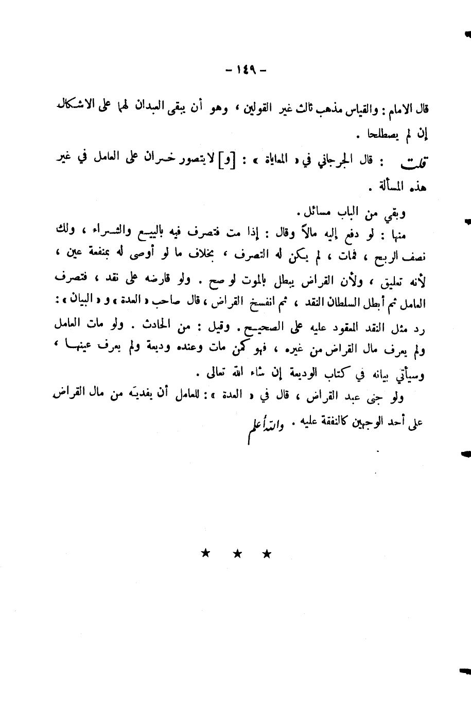 قُلْتُ: قَالَ الْجُرْجَانِيُّ فِي «الْمُعَايَاةِ» : [وَ] لَا يُتَصَوَّرُ خُسْرَانٌ عَلَى الْعَامِلِ فِي غَيْرِ هَذِهِ الْمَسْأَلَةِ.